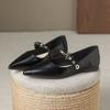 Soft Sole Flats Women's Fashion Rivet Buckle Straps Mary Jane Shoes Elegant Pointed-toe Pumps Lady Microfiber Leather Work Shoes
