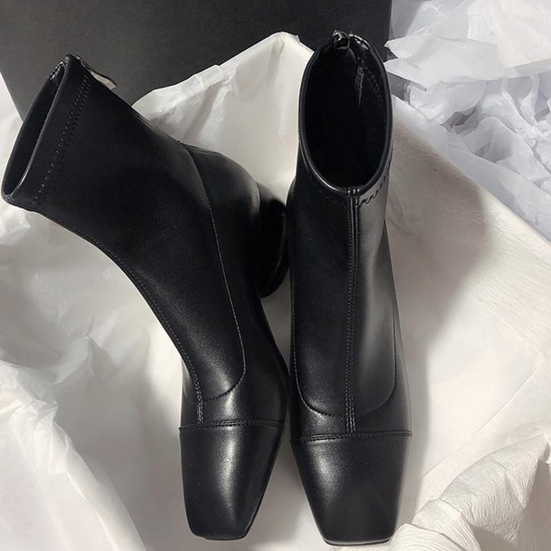 Women's Ankle Boots Mid Heels Square Toe Designer Shoes Winter Chelsea Fashion Leather Goth Walking Pumps Muje Zapatillas