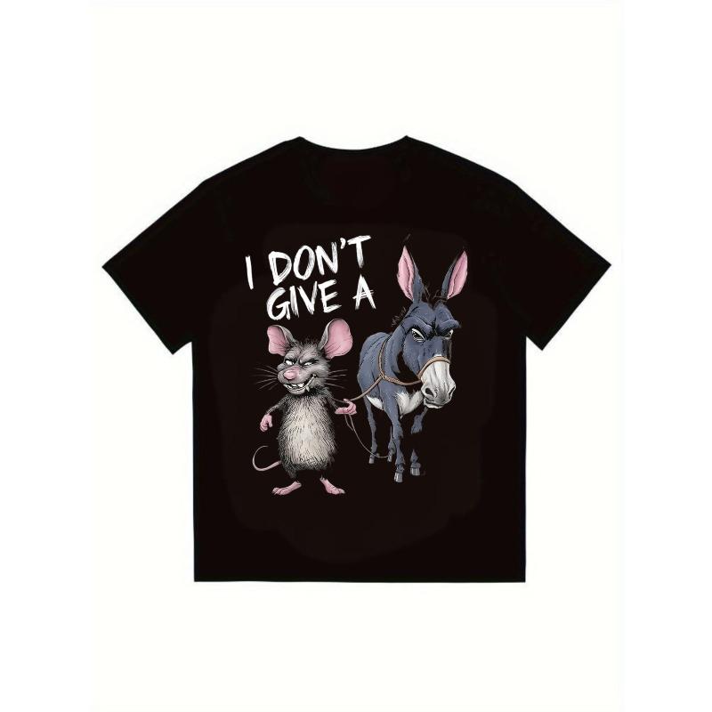 Men's Black T-Shirt I Don't Give A Rat And Donkey Graphic Print Casual Streetwear Top For Everyday Wear