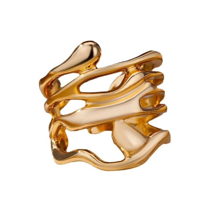 Multipurpose Sturdy Metal Materials Gold Hollow Rings Fashionable Wide Bands Jewelry Gifts for Couples Casual Wear
