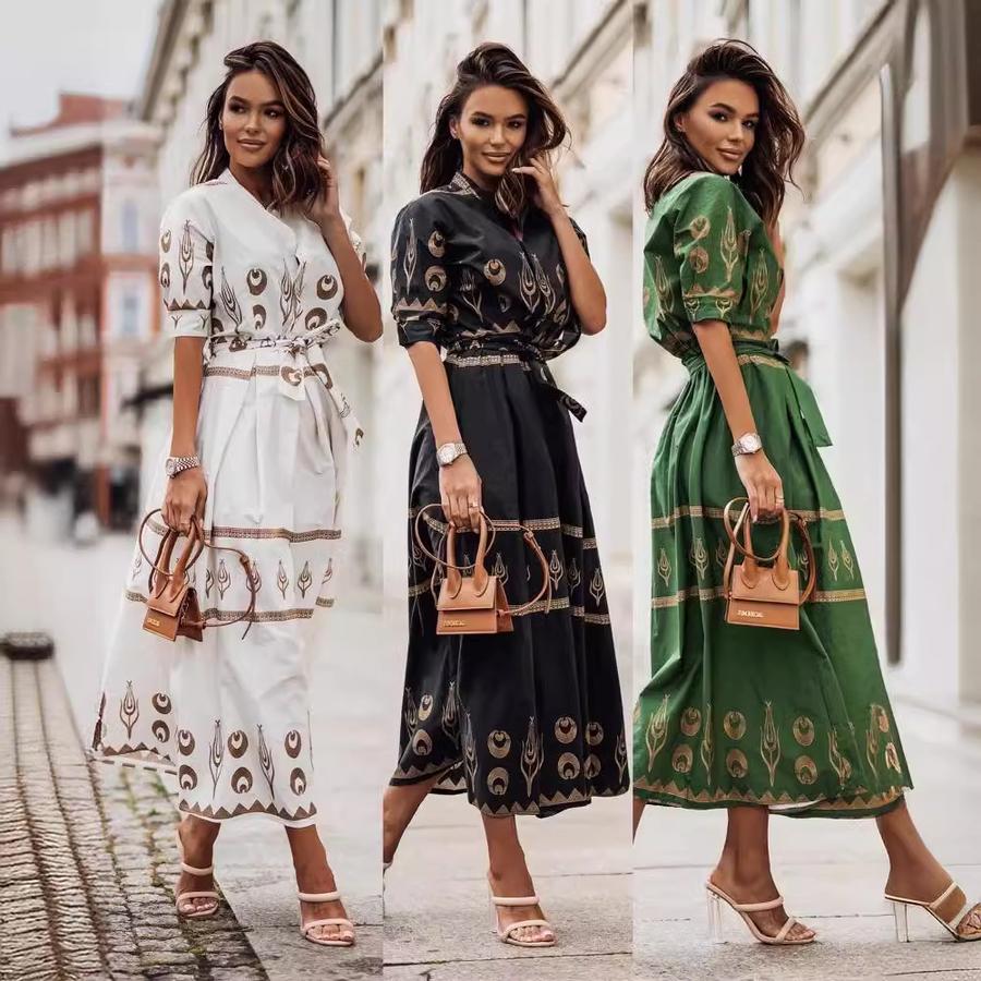 New Dress Autumn Floral Tie-Up Waist Dress for Women