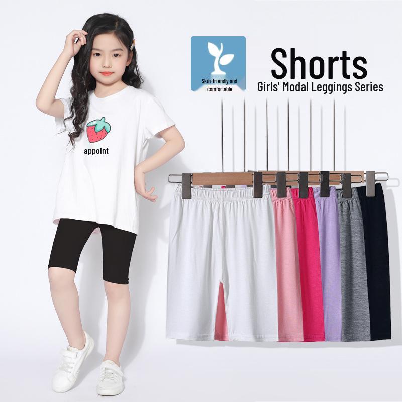 Kids' Summer Mid-Length Leggings: Modal Black or Thin White Girls' Five-Point Safety Pants