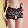 3D Embroidery Panties Ladies Plus Size Sexy Open Crotch Ultra-Thin Mesh Triangle Panties Erotic Lace Panties