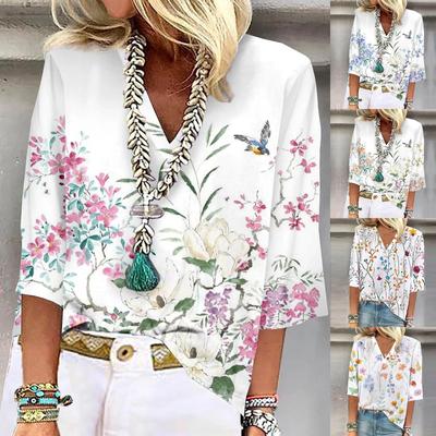 Women's Shirt Blouse Casual Loose Shirts 3/4 Sleeve Print V Neck Tops Print Tops T-shirts Tee