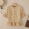 ZANZEA Moteriška kasdieninė palaidinė apvaliu kaklu, vienspalvė, 3/4 rankovėmis, laisva