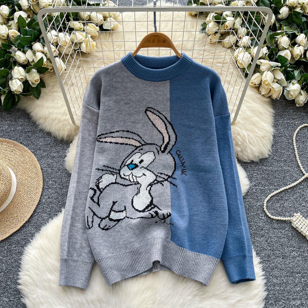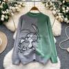 Autumn Winter Women College Style Cartoon Rabbit Knitted Sweater Pullover Tops For Girl