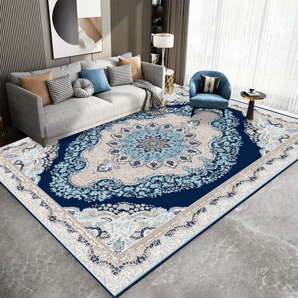 Persian Pattern Nation Carpet Mat Rug Geometric Border Blue White Classic Elegant Home Decoration Living Room Bedroom Floor Mat