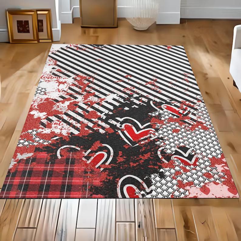 Striped Checkered Carpet Leopard Checkered Red Lip Foyer Carpet Nordic Style Bedroom Warm Decoration Rug Valentine's Day Gift