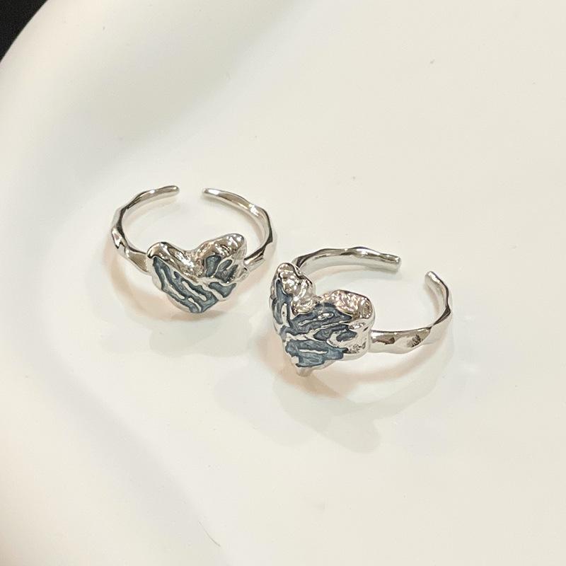 Sea Blue Love Dripping Oil Irregular Folds Personalized Ring Niche Design Cold Wind Couple Open Ring Gift