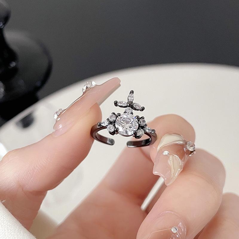 Dark Saturn Belt Buckle Open Ring Full Diamond Zircon Premium Light Luxury Fashion Personality Ring