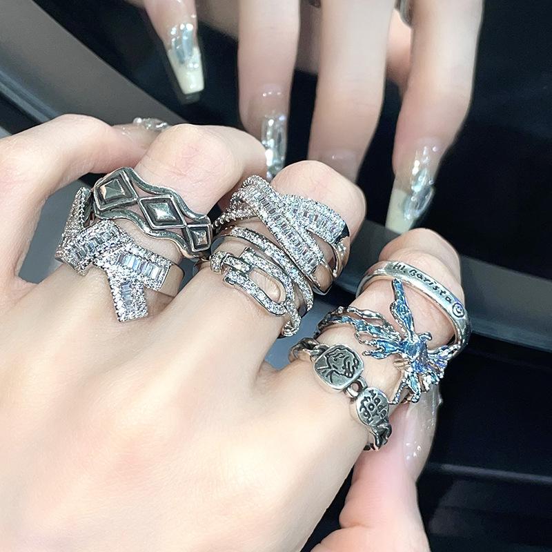 Light Luxury High-End Feeling Full Of Diamonds Zir*****Pen Ring Cold Wind Personality Niche Design Feeling Ring Woman