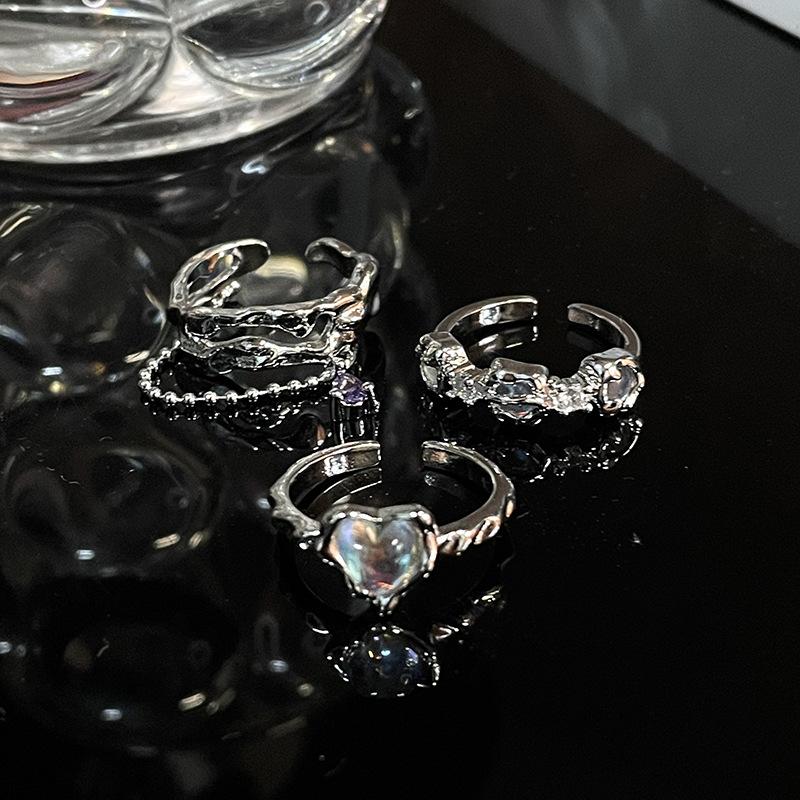Niche Design French Cold Wind High Sense Open Ring Moonstone Love Chain Personalized Ring Women