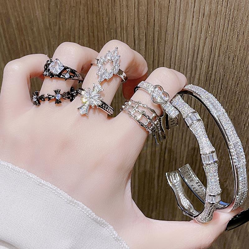 Cross Dark Premium Light Luxury Open Ring Set Cold Wind Zircon Love Bow Ring