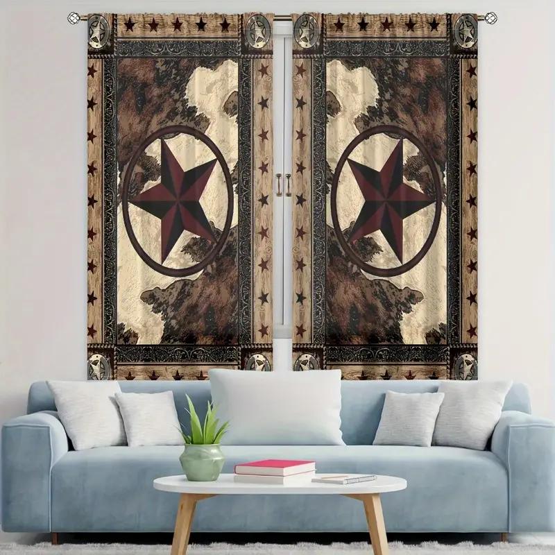 2PCS Retro Star Wen Printed Curtains, Polyester Material Design with Rod Bags, Bedroom, Home Decoration