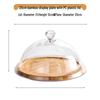 1 pc Display Plate Bamboo Tray Glass Useful Serving Plate Cover Dust Proof Food Serving Stand For Dessert Bread Pastry Snack