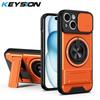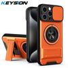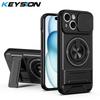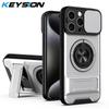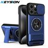 KEYSION Magnetic Phone Case for iPhone 13 14 15 Pro Max 15 Plus Slide Camera Protection Upright Kickstand Shockproof Back Cover