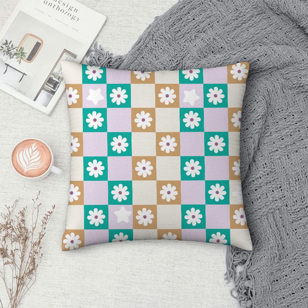 Checkered Flower Pattern Pillow Case Sofa Decorative Home Double-sided Printing Short Plush Cushion Cover Throw Pillow Cover