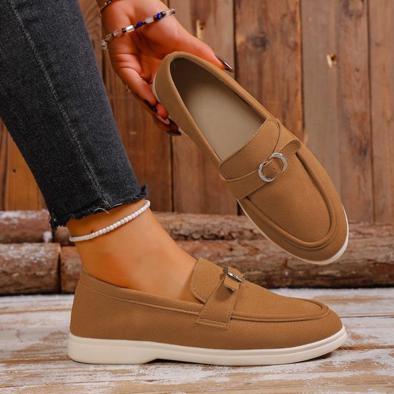 Women's Plus Size Low Top Slip on Retro Flat Shoes Spring Autumn New Metal Buckle Shoes