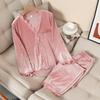 Experience ultimate comfort and style with these luxurious velvet lace pajamas. Designed for fall and winter, this two-piece set features long sleeves and is crafted from soft, high-quality polyester with a gold velvet finish for added warmth. Its sweet and elegant design is perfect for both lounging indoors and stepping out in style, providing the ideal blend of fashion and coziness for the colder months.