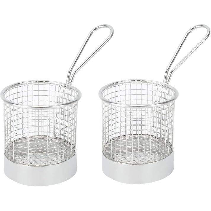 PRACTICAL MINI DEEP FRY BASKET: The french fry holder has an elegant finish, silver finish, simple and unique look, perfect for french fries, snacks and desserts, mini baskets make your food look tastier.