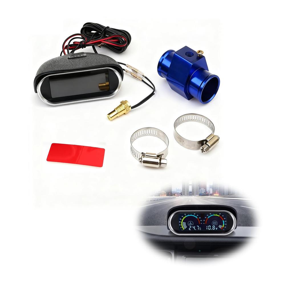 Fireyouracing Water Universal Digital High Easy to Read Even in Alarm Easy 32mm Adapter Included 2-in-1 Temperature/Voltage Meter, In-Vehicle Meter,