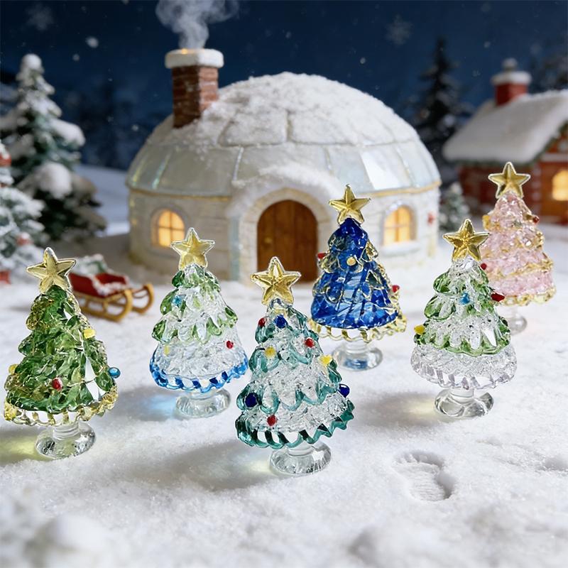 Glass Christmas Tree Ornament Ceramic Rotating Desktop Decoration Christmas Gift for Home Party Holiday Decor Decoration Props