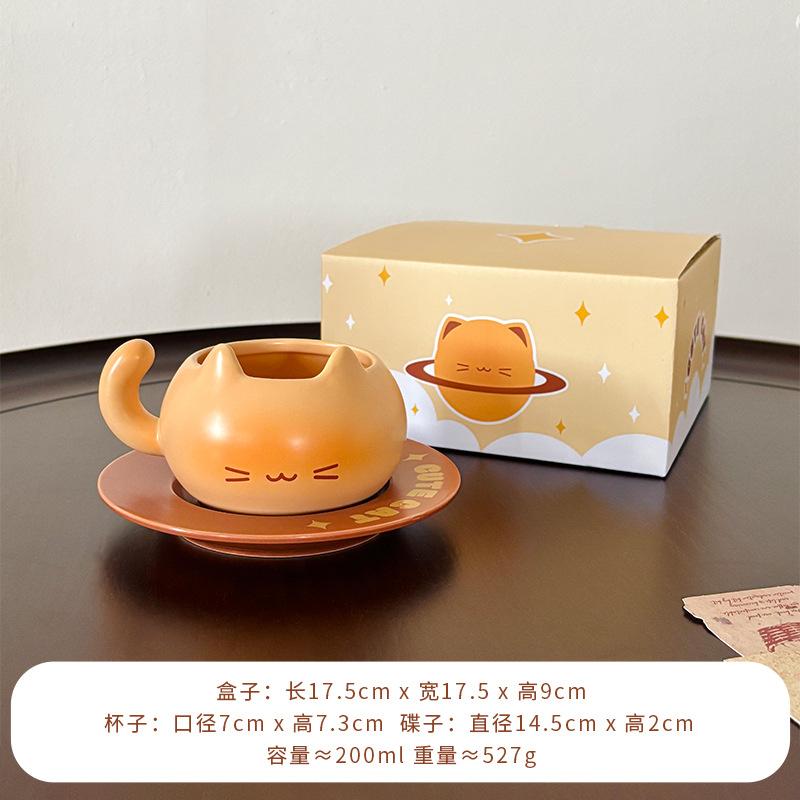 Cartoon Cat Shape Ceramic Coffee Cup Cute Cute Latte Cup Breakfast Milk Cup Coffee Cup Saucer Set