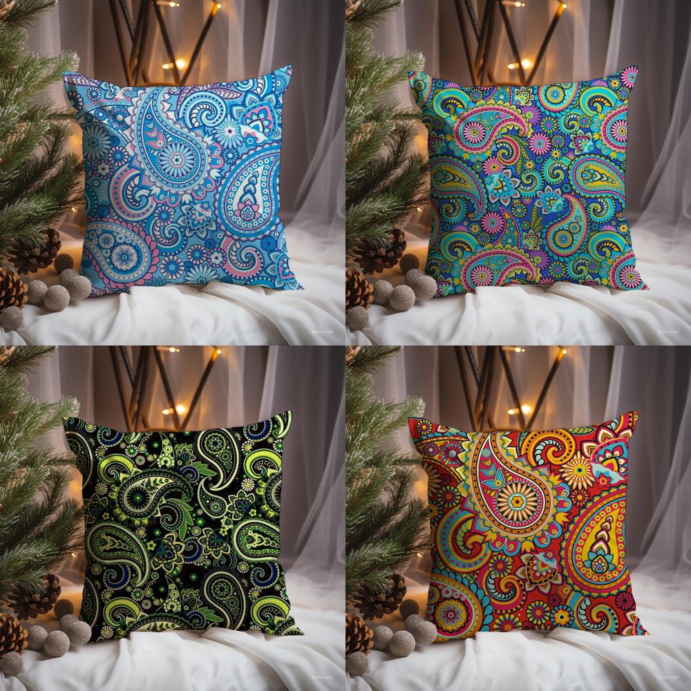 Painted Design P-PaisleyS Cushion Cover Premium Comfort Reversible Pillow Cove -Two in One Design for Any Room & Car Interior