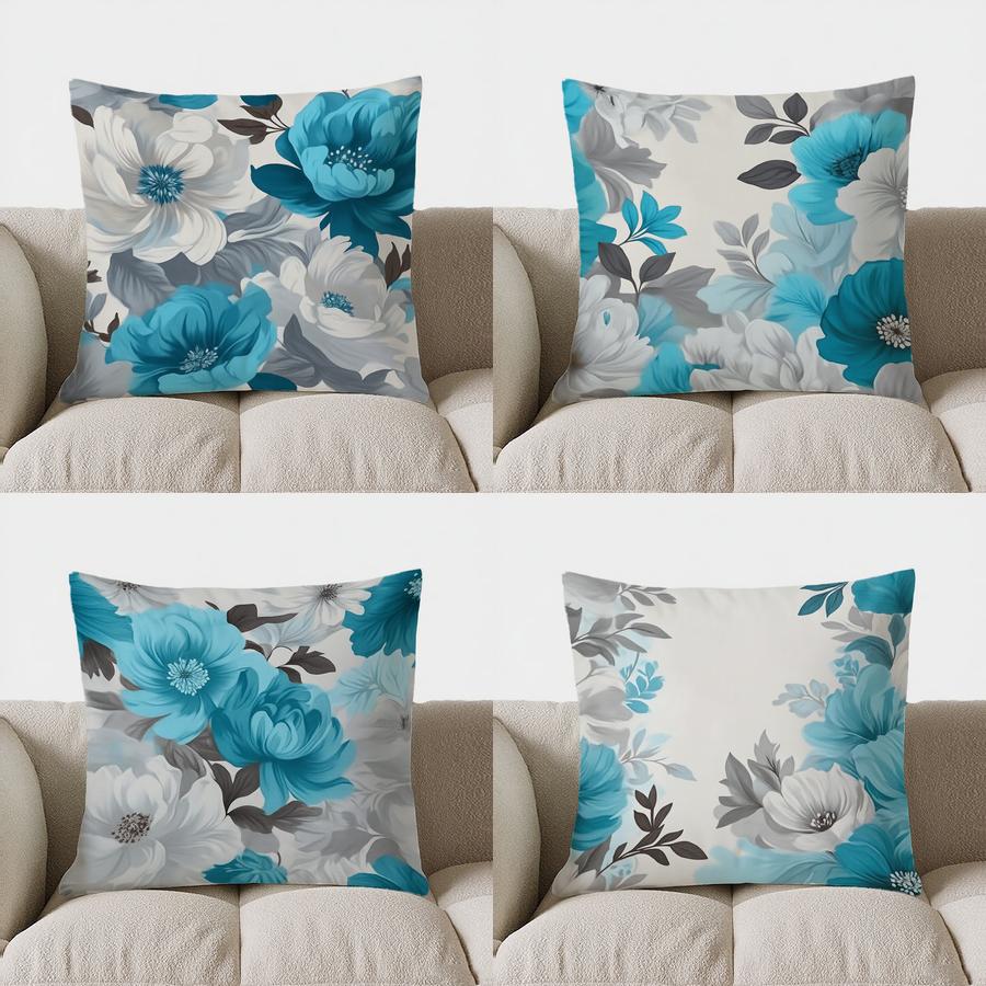 Home Decor Floral Blue & White Patterned Decorative Pillow Pattern Cushion Cover Suitable For Sofa Bedroom Car Pillow Cover
