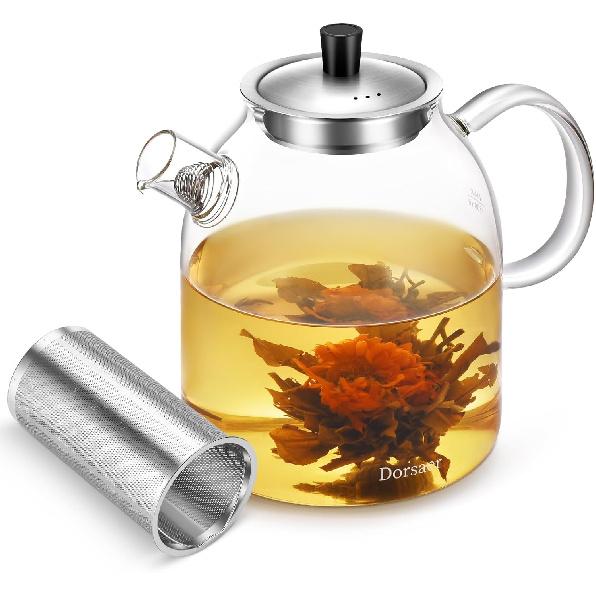 🍵 [Ergonomic and Comfortable Grip] We understand the crucial importance of a comfortable grip for an enhanced teapot experience. That's why this teapot features a widened and thickened glass handle, designed with ergonomic principles in mind. It not only provides an easy grasp but also effectively reduces hand fatigue, ensuring a pleasant and effortless pour every time.
