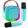 【Wide Compatibility, Plug and Play】Our karaoke machine for kids adults comes with 2 wireless microphones can be connected through bluetooth, USB cable, SD card, USB drive, mobile phone, wired earphones, pad, laptop, desktop computer without music player.Long press the power button on the top of the product for 3 seconds to start use/singing, click to pause, click the sing button to eliminate the original sound and create a accompaniment, use "+" and "-" to adjust the volume.