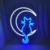 Moon Cat Neon Signs for Wall Decor White Blue LED Light Sign for Preppy Room Decor Light Up Sign for Birthday Party Decoration USB Powered