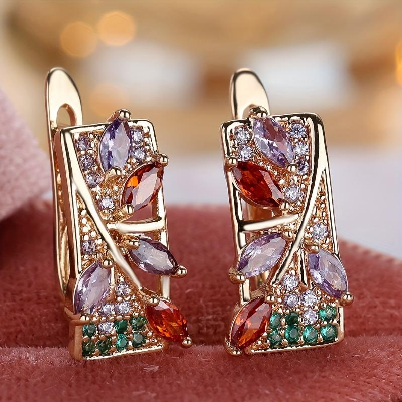 Prabangūs gėlių pakabukai auskarai su spalvotais cirkoniais Elegantiškas bohemiškas stilius vestuvėms, nuotakoms, oficialiems renginiams Renginių aksesuarai
