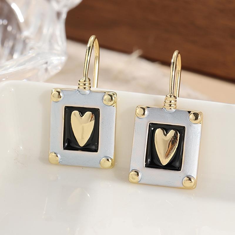 New Vintage Square Hand Carved Heart-shaped Pendant Earrings for Women Exquisite Date Banquet Jewelry Accessories Crafts