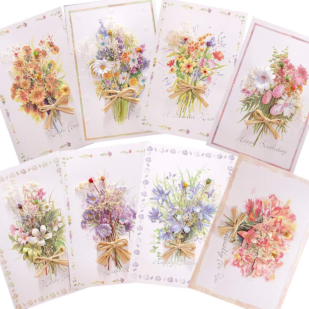 moin moin Message Cards Inner Paper Assortment Set Thank Dried 3D Foil Gold Bouquet Gerberas (Card + + Envelope) 8-Piece You, Birthday, Greeting,