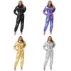 Women's Role Play Astronaut Outfit S-3XL, Shiny Metallic Jumpsuit with Mock Neck Long Sleeves, Zipper Bodysuit Halloween Costume