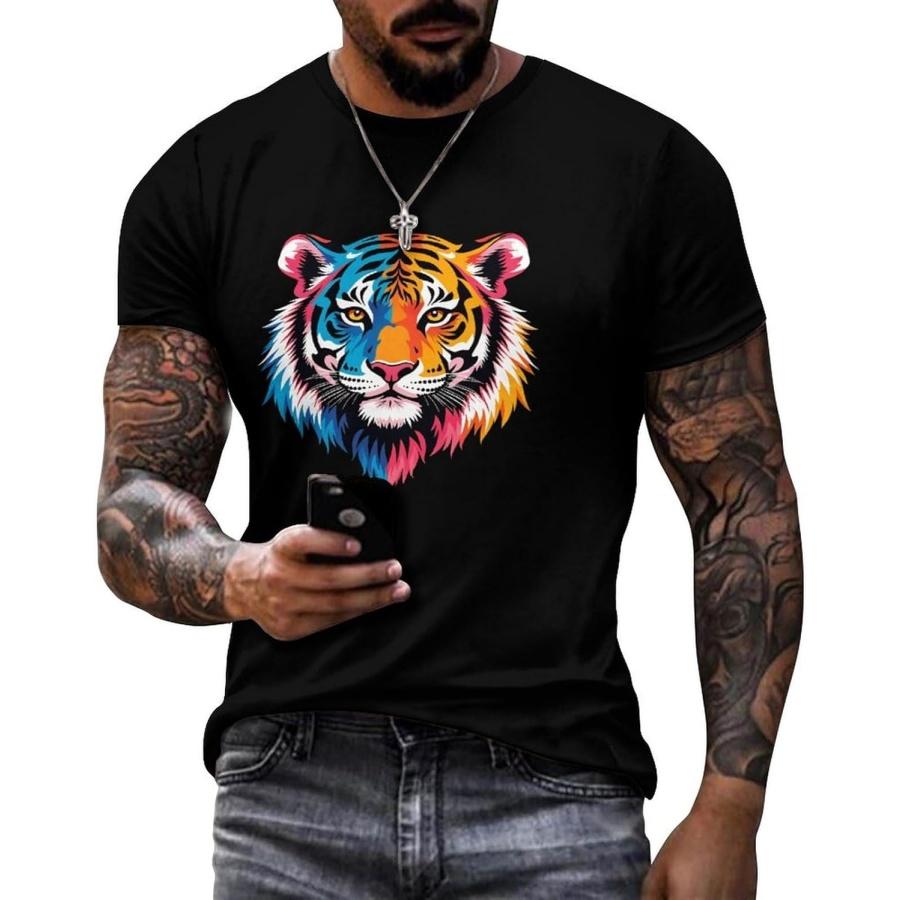 Crewneck Casual Colorful Tiger, Animal Art Shirt Cotton T-Shirt Summer Tee