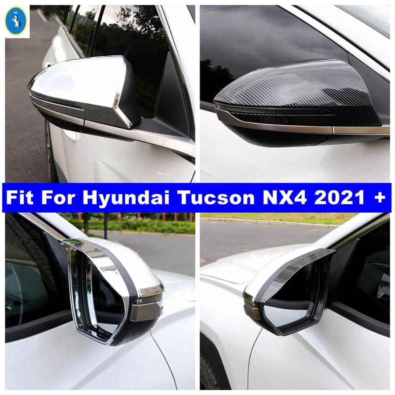 Chrome / Carbon Fiber Rearview Mirror Shell Rain Eyebrow Weatherstrip Shield Shade Cover Trim For Hyundai Tucson NX4 - 2025