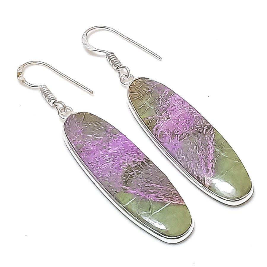 Natural Purpurite Gemstone 925 Sterling Silver Jewelry Earring 2.36" AEE-11054