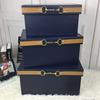 Luxury Pu Leather Orange Storage Bins Colorful Storage Box Organizer Containers Baskets with Cover Handles