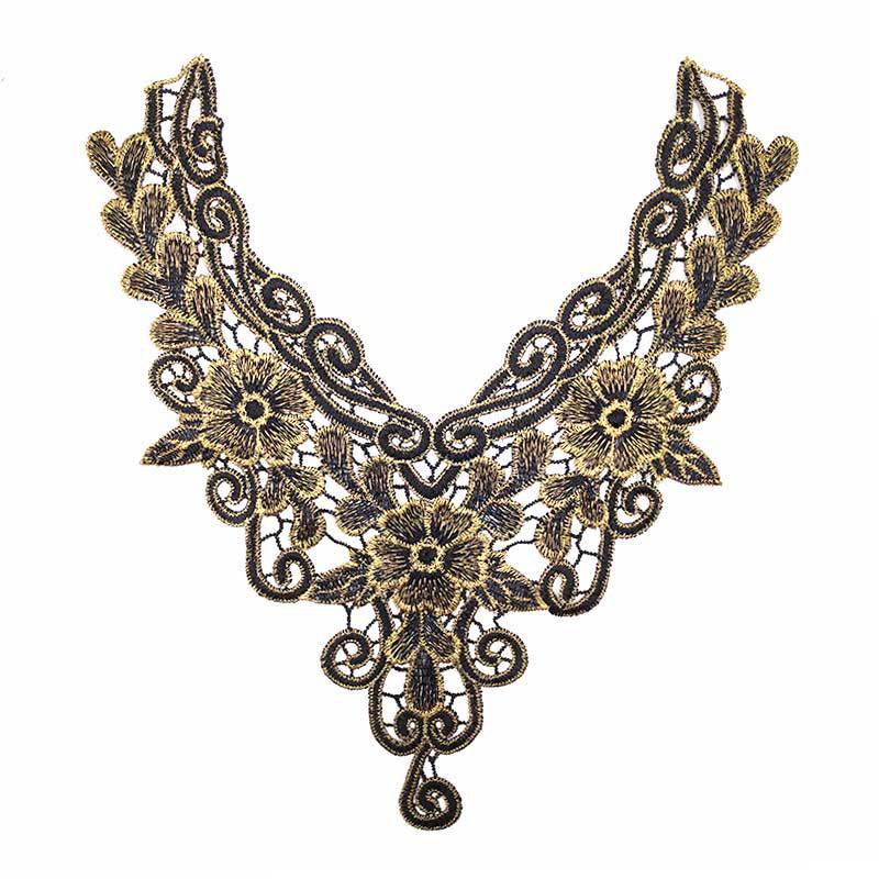 Water-soluble lace collar, heavy industry two-color collar, black and gold embroidered collar, three-dimensional hollow embroidery, gold thread.