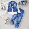 Pristatome madingą ir universalią trijų dalių džinsinę aprangą mergaitėms, puikiai tinkančią 2025 m. pavasario ir rudens sezonams. Šį stilingą ansamblį sudaro ilgomis rankovėmis pagrindiniai marškiniai, prašmatni liemenė ir džinsinės kelnės, visi pagaminti iš aukštos kokybės džinsinio audinio.. Šis derinys, kuriame dera patogumas ir mada, sukurtas tam, kad jūsų mažylis bet kokia proga atrodytų stilingai ir savimi pasitikintis.. Idealiai tinka suteikti kasdieniams drabužiams stiliaus ar padaryti įspūdį ypatingomis progomis.