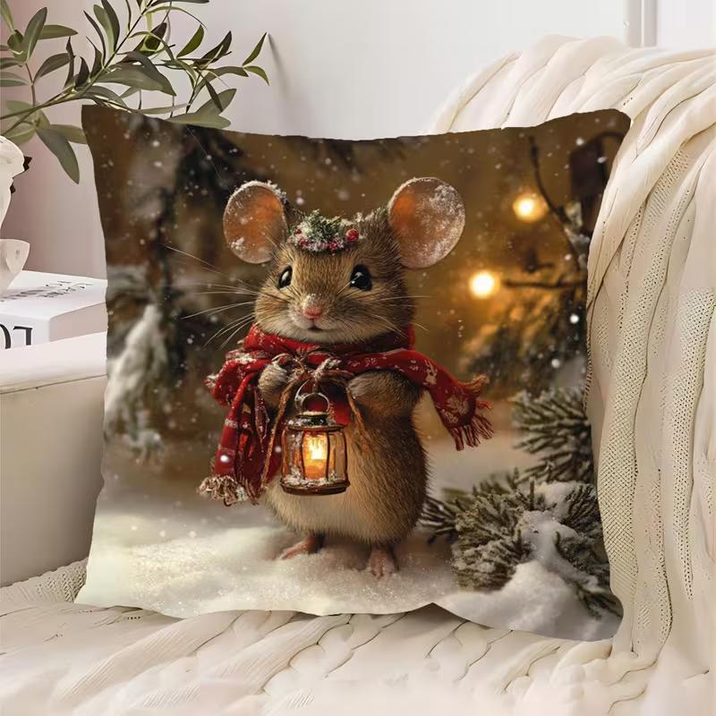 Cute animals print pillowcase: 2D flat printing, non-real embroidery, night sofa night sofa cushion