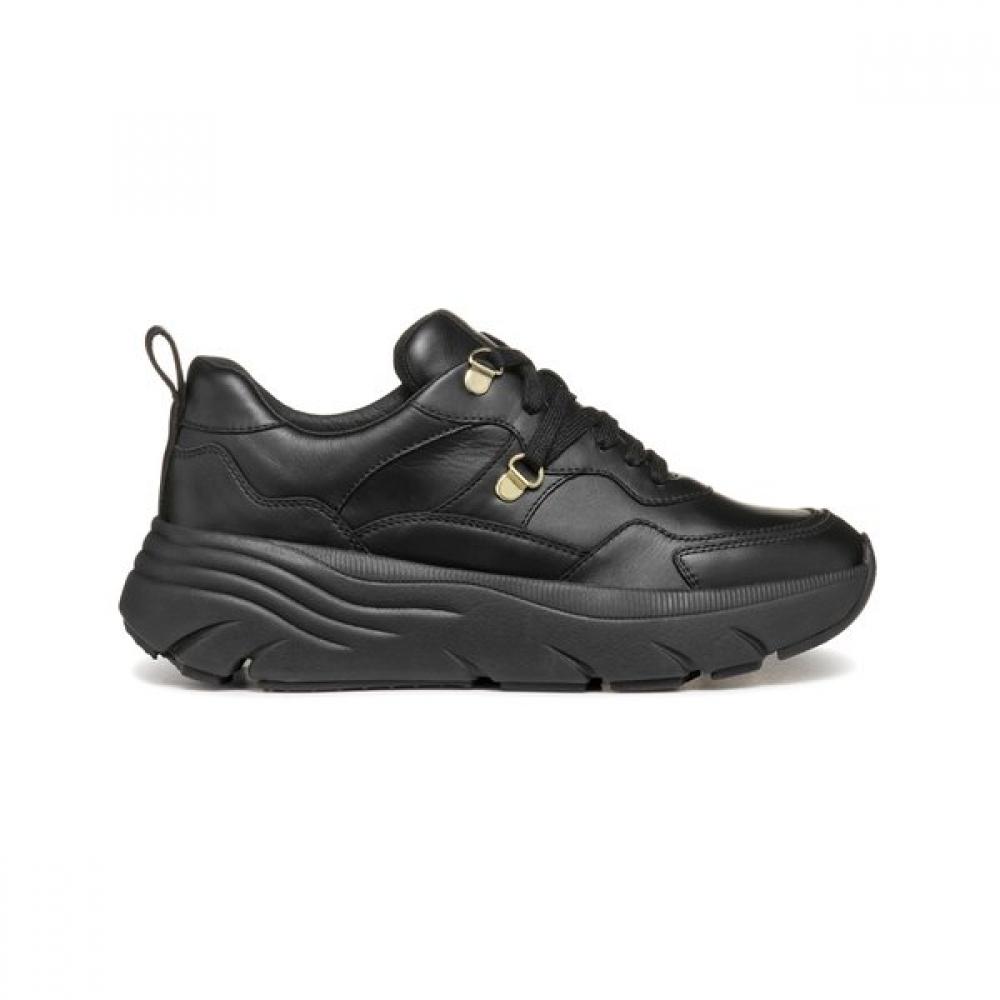 The GEOX Women’s Comfort Ugly Sneakers are in a black color, referred to as triple black, where the soft leather material wraps the foot comfortably and the rubber outsole provides a comfortable wearing experience. This product features the characteristics of the comfort line and is designed to maintain comfort even when worn for long periods.