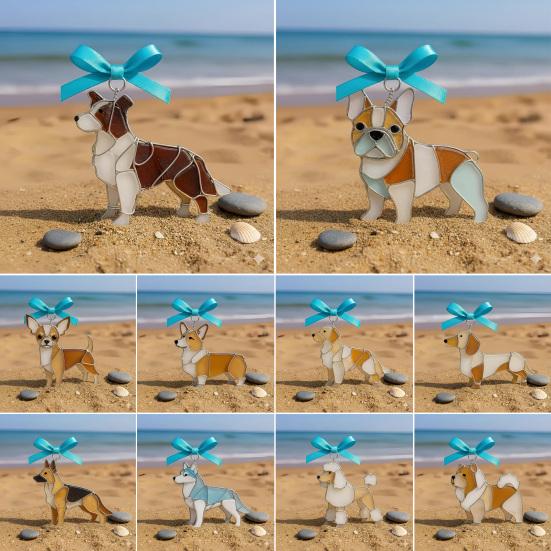Colorful Dog Acrylic Suncatcher Stained Glass Corgi/Bulldog/Chihuahua Ornament Window Christmas Tree Hanging Decor with Bow Holiday Gift for Dogs