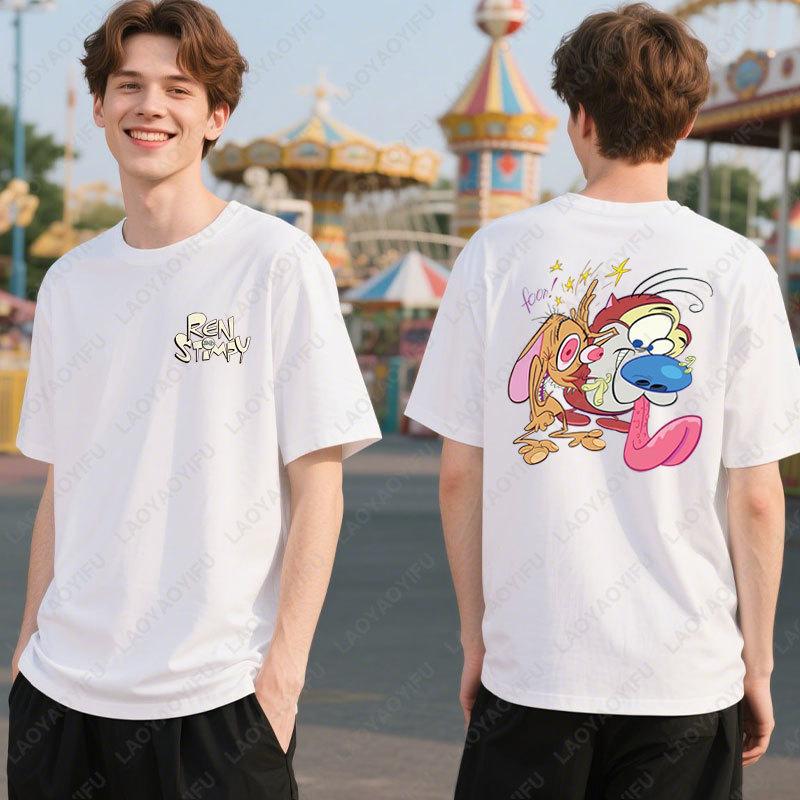 80s Ren Stimpy Show Television Nickelodeon Cartoon Double Sided Tshirt Medium Harajuku Lovely Summer Style Hipster Cotton Tees
