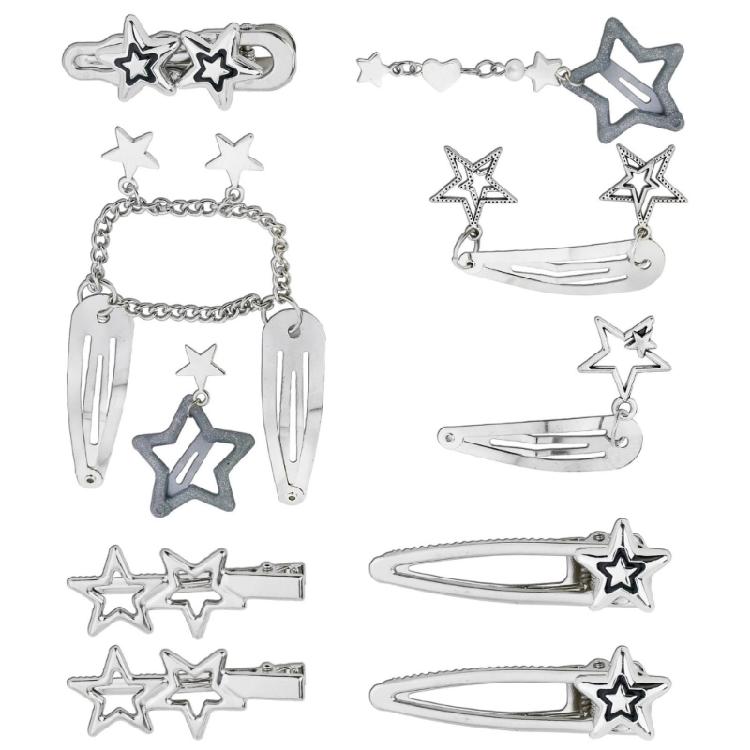 10Pcs/5Pcs Metal Star Barrettes Hair Clips Punk Pentagrams Charm Hairpin Hair Accessories for Women Fashionable Jewelry