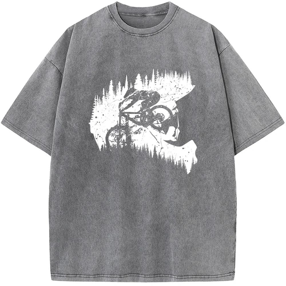 Cycling Cyclist Printed Men T-Shirt Cotton O-Neck Washed T-Shirt Novelty Casual Loose Bleach T shirt Summer Bleached Tshirt