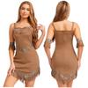 Authentic Native American Halloween Costume for Women S-4XL: Faux Suede Dress with Tassel Hem & Arm Cuffs for Cosplay