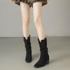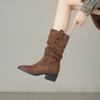 Spring retro cowboy boots new pointed thick heel pleated Martin boots stacked short knight boots
